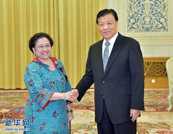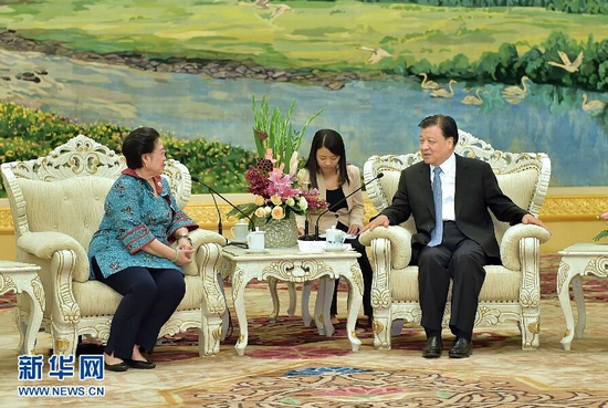 10月14日,中共中央政治局常委、中央书记处书记刘云山在北京会见前来出席亚洲政党丝绸之路专题会议的印尼民主斗争党总主席、前总统梅加瓦蒂。新华社记者李涛摄