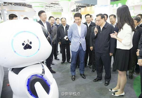 李克强19日在全国双创周上与百度公司自主研发的机器人“小度”亲切交谈。“你为什么叫小度?”“百度造的呀~”“你储存了多少数据?”“太多了~”“今天PM2.5值是?”机器人正在“思考”,总理追问:“你知道双创也利于改善环境吗?”“当然啦!”众人不时被逗得哈哈大笑。