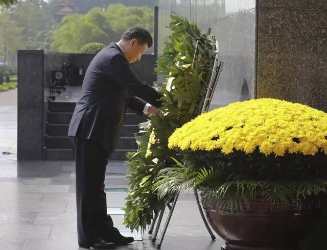 11月6日,中共中央总书记、国家主席习近平在河内拜谒胡志明陵并敬献花圈。新华社记者兰红光摄