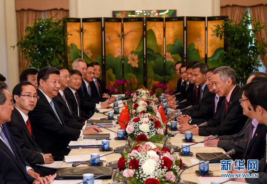 11月7日,中国国家主席习近平在新加坡会见新加坡总理李显龙。新华社记者 李学仁 摄