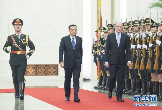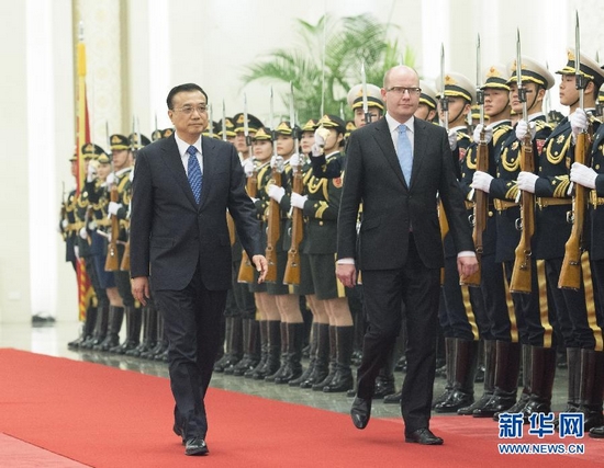 11月27日,国务院总理李克强在北京人民大会堂同来华出席第四次中国-中东欧国家领导人会晤并对华进行正式访问的捷克总理索博特卡举行会谈。会谈前,李克强在人民大会堂北大厅为索博特卡举行欢迎仪式。新华社记者 王晔 摄