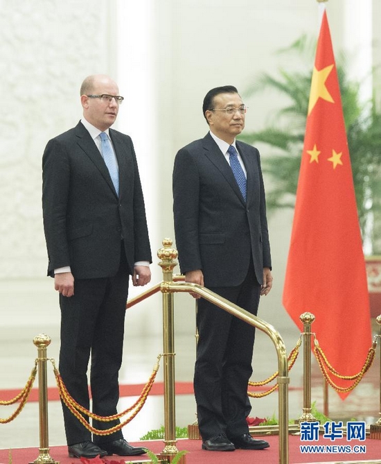 11月27日,国务院总理李克强在北京人民大会堂同来华出席第四次中国-中东欧国家领导人会晤并对华进行正式访问的捷克总理索博特卡举行会谈。会谈前,李克强在人民大会堂北大厅为索博特卡举行欢迎仪式。新华社记者 王晔 摄