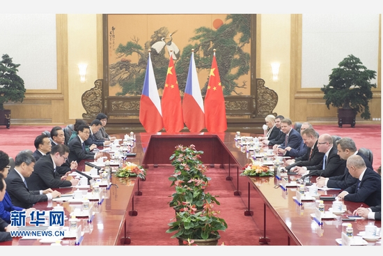 11月27日,国务院总理李克强在北京人民大会堂同来华出席第四次中国-中东欧国家领导人会晤并对华进行正式访问的捷克总理索博特卡举行会谈。新华社记者 王晔 摄