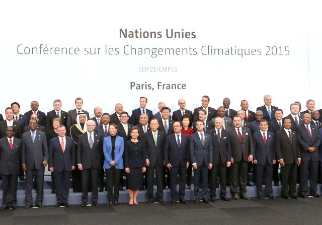 11月30日,国家主席习近平在巴黎出席气候变化巴黎大会开幕式并发表题为《携手构建合作共赢、公平合理的气候变化治理机制》的重要讲话。这是与会领导人合影。新华社记者 马占成 摄