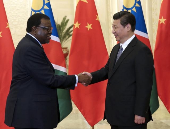 图为:2014年4月8日,习近平会见纳米比亚总理根哥布。