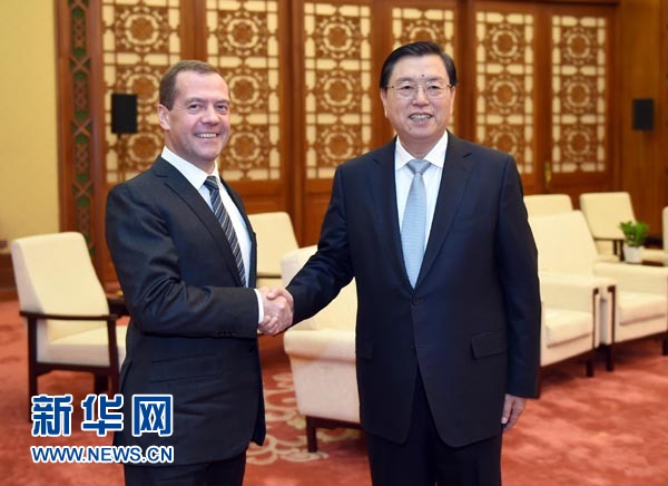 张德江会见俄罗斯总理梅德韦杰夫(图)