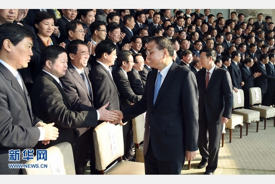 12月21日,中共中央政治局常委、国务院总理李克强在北京接见全国政府秘书长和办公厅主任会议全体代表并作重要讲话。中共中央政治局常委、国务院副总理张高丽出席。 新华社记者 张铎 摄