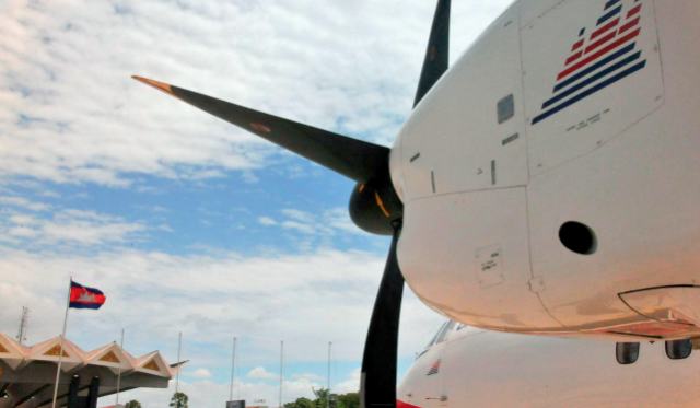2015年7月1日,在柬埔 寨金边国际机场,执行首航任务 的中国产新舟60支线客机准备起飞。柬埔寨巴戎航空公司金边—胡志明航线首班飞机当日顺利完成首航,标志着巴戎航空公司首条国际航线正式开通。中国产新舟60支线客机将执行本次航线。