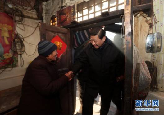 2012年12月29日至30日,习近平总书记在河北省阜平县看望慰问困难群众。这是习近平在龙泉关镇骆驼湾村到困难群众唐荣斌家看望。新华社记者兰红光摄