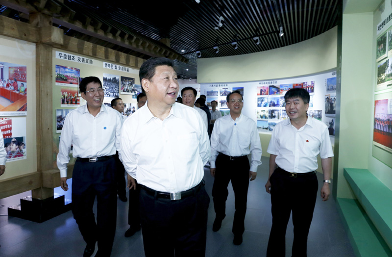 7月16日至18日,中共中央总书记、国家主席、中央军委主席习近平在吉林调研。这是7月16日,习近平在延边博物馆参观延边州成就展。新华社记者 鞠鹏 摄