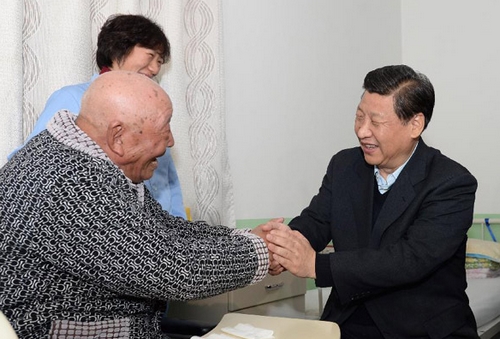 图为:2014年元旦前夕,习近平12月28日深入北京市供热企业和敬老院,考察民生工作,看望一线职工,慰问老年群众,向全国一线职工表示慰问,向全国老年群众致以祝福。