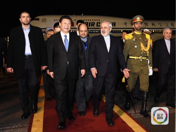 1月22日,国家主席习近平乘专机抵达伊朗首都德黑兰,开始对伊朗进行国事访问。这是在梅赫拉巴德机场,习近平受到伊朗外交部长扎里夫等热情迎接。(新华社记者饶爱民摄)
