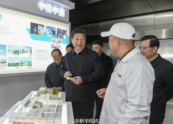 琳琅满目的中医药产品、生物医药产业的蓬勃发展,给总书记留下深刻印象。他说,医疗保健是全面建成小康社会的重要方面,要下大气力抓好,生产廉价、高效、优质、群众需要的药品,杜绝假冒伪劣,切实保障老百姓的生命健康权益。中医药是中华文明瑰宝,是5000多年文明的结晶,在全民健康中应该更好发挥作用。