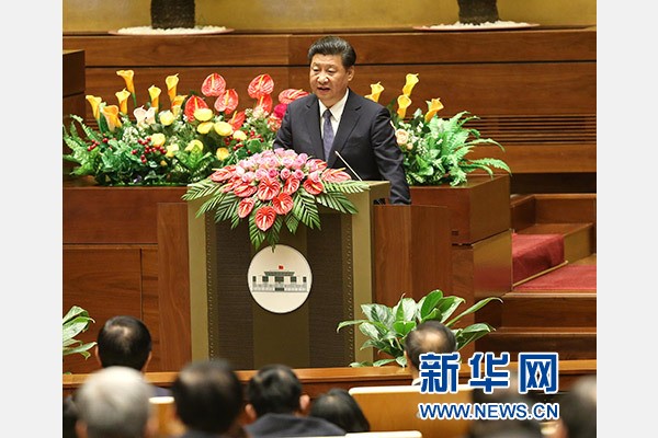 2015年11月6日,中共中央总书记、国家主席习近平在越南国会发表题为《共同谱写中越友好新篇章》的重要演讲。新华社记者庞兴雷摄