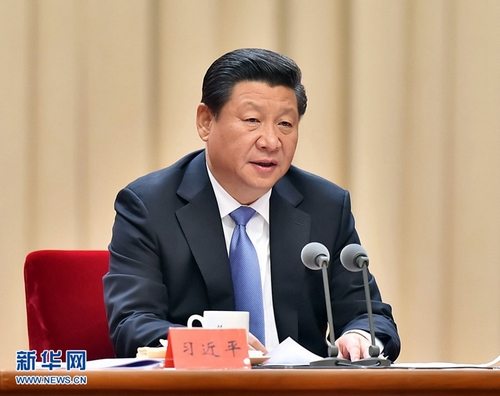 图为:2014年10月8日,中共中央总书记、国家主席、中央军委主席习近平在党的群众路线教育实践活动总结大会上发表重要讲话。