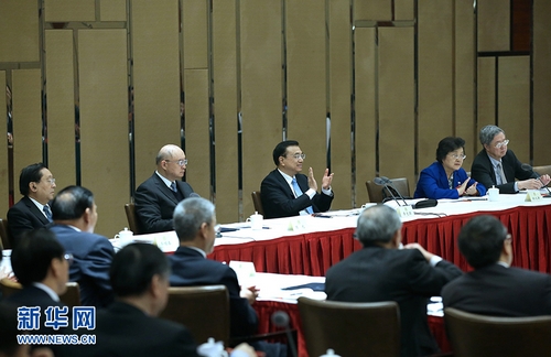 3月4日,中共中央政治局常委、国务院总理李克强看望出席全国政协十二届四次会议的经济、农业界委员并参加讨论。 新华社记者庞兴雷摄