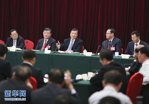 3月4日,中共中央政治局常委、中央书记处书记刘云山看望出席全国政协十二届四次会议的民盟、农工党委员并参加讨论。 新华社记者丁林摄