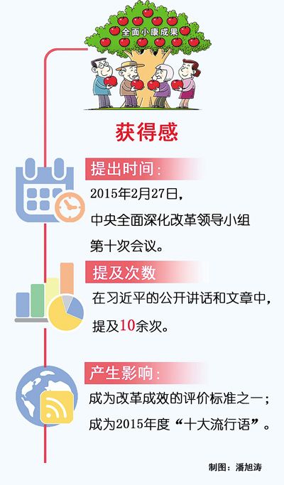 2015年2月27日,在中央全面深化改革领导小组第十次会议上,习近平总书记在公开场合第一次提到“获得感”。他强调,要处理好改革“最先一公里”和“最后一公里”的关系,突破“中梗阻”,防止不作为,把改革方案的含金量充分展示出来,让人民群众有更多获得感。