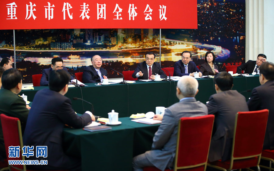 李克强在重庆代表团参加审议。黄奇帆、张轩、刘希娅等代表分别就内陆开放、新型城镇化、教育均衡发展等问题作了发言。听了大家的发言后,李克强说,重庆在国家发展中具有重要战略地位,希望继续敢闯实干,巩固经济社会发展良好态势。要依靠改革开放促进发展,尤其要持续推进简政放权、放管结合、优化服务改革,营造公平竞争市场环境,把蕴藏在人民群众中的巨大活力和创造力激发出来,吸收借鉴国际先进经验,提升技术、管理水平,打造知名品牌,争做中西部改革开放的排头兵。要培育新动能、发展新经济,抓住推进新型城镇化等重大机遇,围绕群众消费升级需求,促进新技术、新产业、新业态成长,提升传统产业水平,提高劳动生产率,拓展就业空间。要在长江经济带发展中发挥支撑引领作用,保护青山绿水,推进基础设施互联互通,补上教育等基本公共服务短板,加快脱贫攻坚,辐射、带动周边和腹地,推动西部大开发,为全国发展增添更大动力。