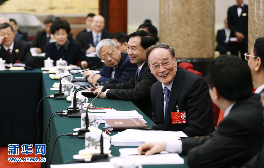 3月8日,中共中央政治局常委、中央纪委书记王岐山参加十二届全国人大四次会议辽宁代表团的审议。 新华社记者 鞠鹏 摄