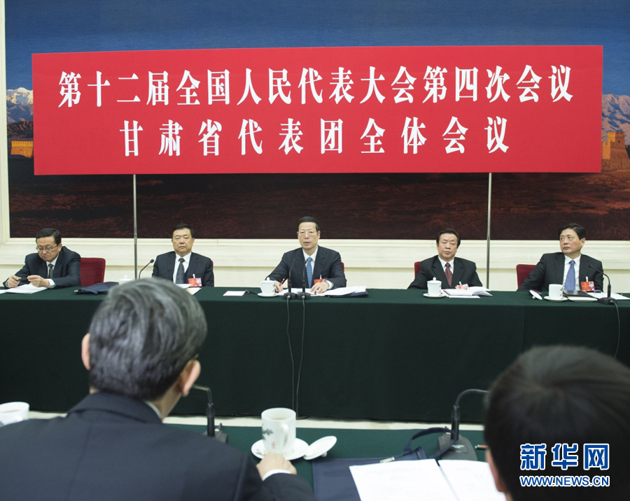 3月8日,中共中央政治局常委、国务院副总理张高丽参加十二届全国人大四次会议甘肃代表团的审议。 新华社记者 王晔 摄