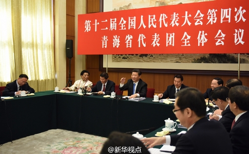 2016年3月10日,习近平参加十二届全国人大四次会议青海代表团的审议。