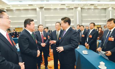(3月4日下午,习近平参加全国政协十二届四次会议的民建、工商联委员联组会。)