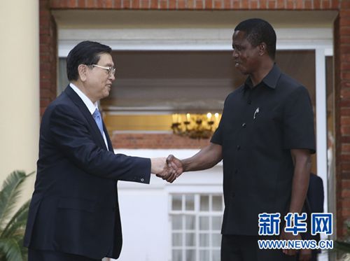 新华社卢萨卡3月22日电(记者杨依军 彭立军)应赞比亚国民议会议长马蒂比尼邀请,全国人大常委会委员长张德江18日至22日对赞比亚进行正式友好访问,在首都卢萨卡会见赞比亚总统伦古,与马蒂比尼举行会谈,并会见赞比亚首任总统卡翁达。