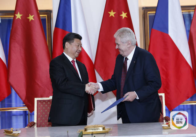3月29日,国家主席习近平在布拉格同捷克总统泽曼举行会谈。会谈后,两国元首共同签署《中华人民共和国和捷克共和国关于建立战略伙伴关系的联合声明》。(新华社记者鞠鹏摄)