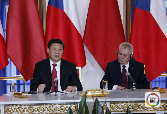 3月29日,国家主席习近平在布拉格同捷克总统泽曼举行会谈。会谈后,习近平和泽曼共同会见记者。(新华社记者鞠鹏摄)