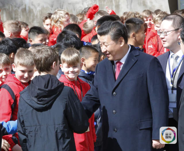 3月29日,国家主席习近平在布拉格同捷克总统泽曼举行会谈。会谈后,两国元首共同会见中捷冰球、足球少年运动员。(新华社记者鞠鹏摄)
