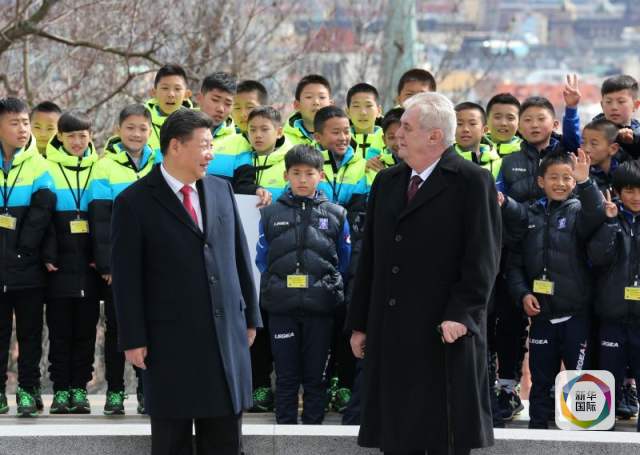 3月29日,国家主席习近平在布拉格同捷克总统泽曼举行会谈。会谈后,两国元首共同会见中捷冰球、足球少年运动员。(新华社记者庞兴雷摄)