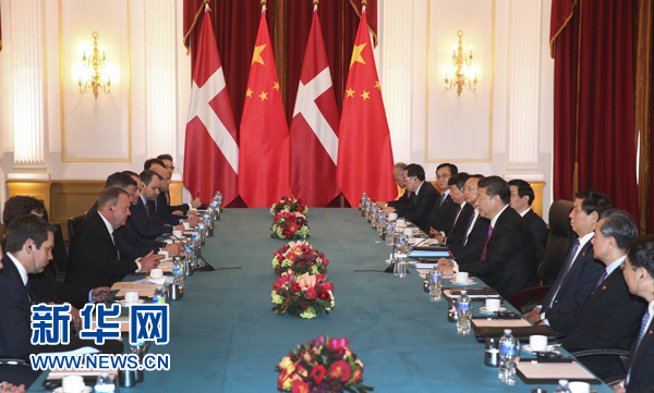 习近平指出,中丹关系发展凝聚了两国几代领导人的智慧和心血。近年来,中丹政治互信不断增强,务实合作全面推进。新形势下,中丹关系持续深入发展,符合两国和两国人民共同利益。