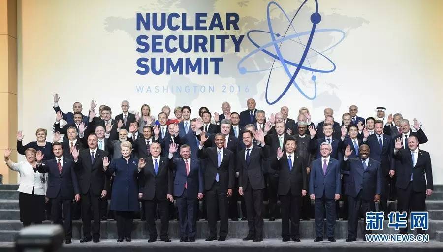 图为:2016年4月1日,国家主席习近平在华盛顿出席第四届核安全峰会,期间同与会领导人集体合影。