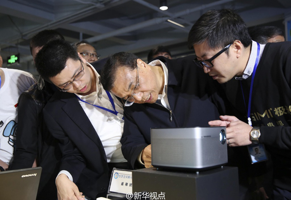 李克强25日考察四川成都菁蓉创客小镇。一位创客播放电视剧《历史转折中的邓小平》展示公司最新款家用投影仪,其中恰好出现了家庭联产承包责任制的画面,小平同志鼓励调动家庭经济积极性。总理说:“双创”就是要充分调动新时期每个个体的积极性。