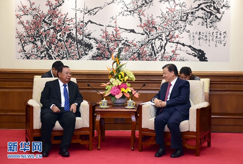 5月4日,中共中央政治局常委、中央书记处书记刘云山在北京会见老挝人民革命党中央总书记、国家主席本扬。 新华社记者 张铎 摄