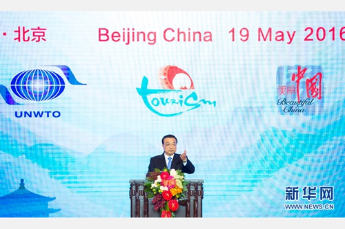 5月19日,国务院总理李克强在北京人民大会堂出席首届世界旅游发展大会开幕式并致辞。 新华社记者王晔摄