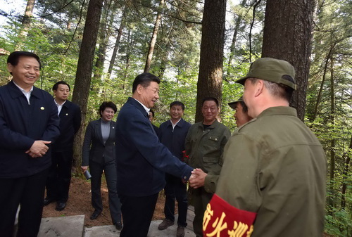 在上甘岭林业局,习近平走进红松林深处,同正在巡山的护林员进行交流,了解他们的工作生活情况。护林员甄长龙一一回答并对总书记谈了自己从伐木工人转变为护林员的感受。习近平说,广大林业职工当年从事伐木,支援国家建设,为国家作出重要贡献。现在时代不同了,我们要对有限林业资源实行保护。当年砍是必要的,现在护更是必要。全面停伐后,林业职工工作生活情况我很惦记。在过渡阶段有不少困难,国家会继续给予扶持,通过发展接续产业,开辟更加美好的前景。