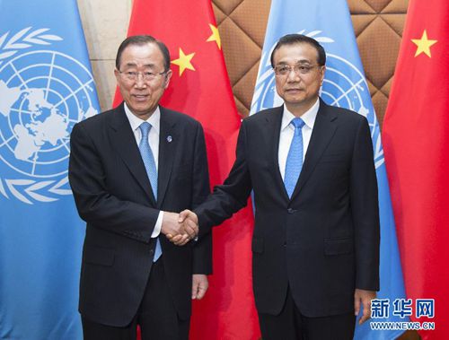 7月8日,国务院总理李克强在北京会见来华访问的联合国秘书长潘基文。新华社记者谢环驰摄