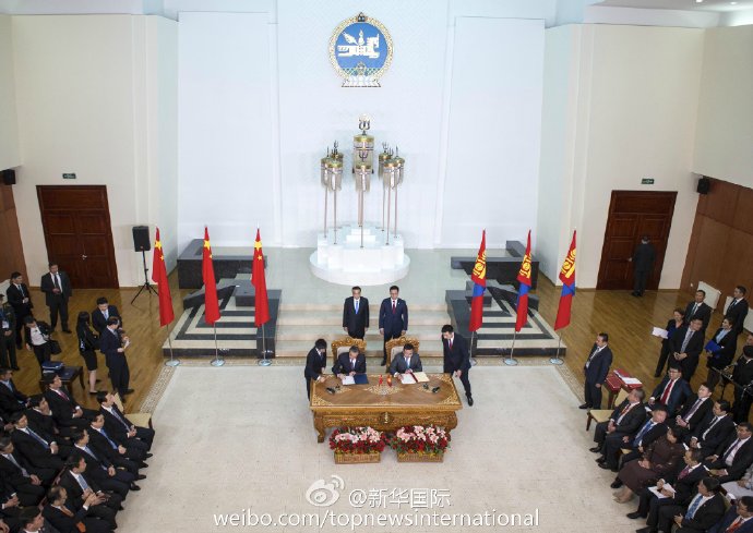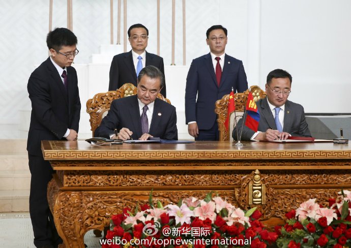 中蒙总理共同出席两国合作协议签字仪式
