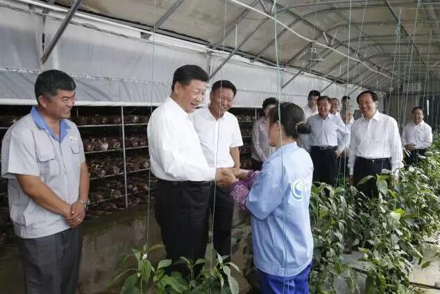 7月19日上午,习近平在银川市永宁县闽宁镇原隆移民村考察蔬菜香菇种植大棚。 新华社记者 鞠鹏 摄