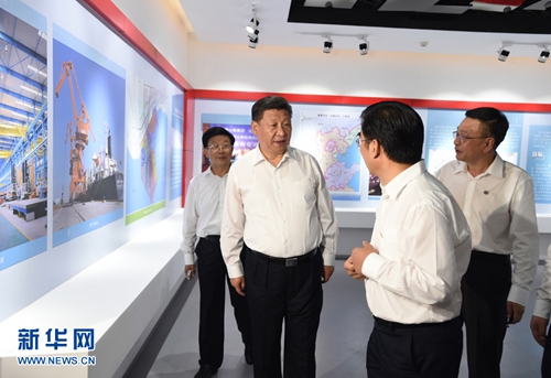 7月28日,中共中央总书记、国家主席、中央军委主席习近平到河北唐山市调研考察。这是习近平在唐山市规划展览馆参观唐山抗震40周年成就展。新华社记者 谢环驰 摄
