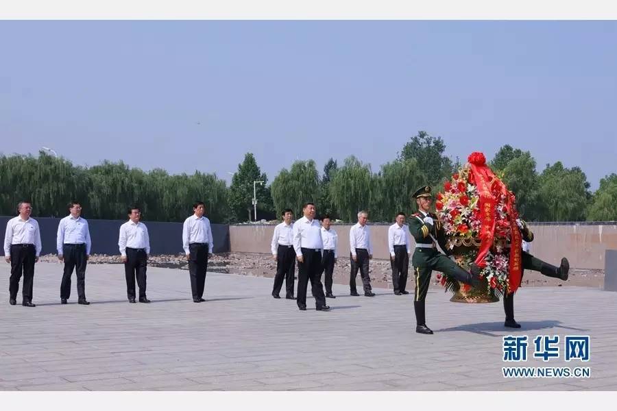 图为:2016年7月28日,中共中央总书记、国家主席、中央军委主席习近平到河北唐山市调研考察。这是习近平在唐山地震遗址公园向唐山大地震罹难同胞和在抗震救灾中捐躯的英雄敬献花篮。