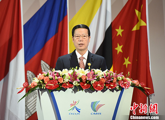 9月11日,第十三届中国-东盟博览会、中国-东盟商务与投资峰会在广西壮族自治区南宁市开幕,中共中央政治局常委、国务院副总理张高丽发表主旨演讲。 中新社记者 侯宇 摄