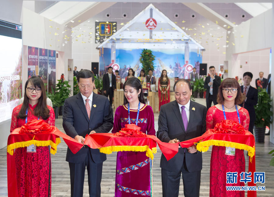 开幕式后,张高丽巡视博览会展馆并同阮春福共同出席越南馆开馆仪式。