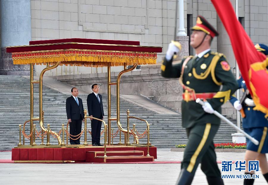 会谈前,李克强在人民大会堂东门外广场为阮春福举行欢迎仪式。全国政协副主席马培华等参加。