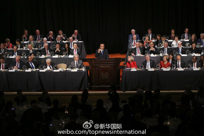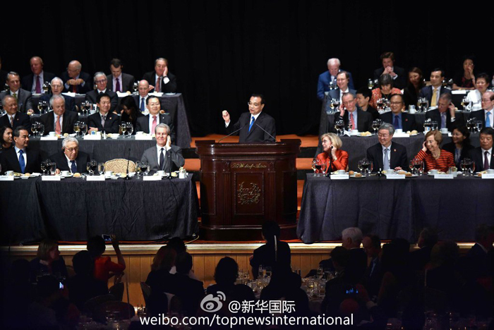 李克强总理出席纽约经济俱乐部举行的欢迎宴会并致辞(图)