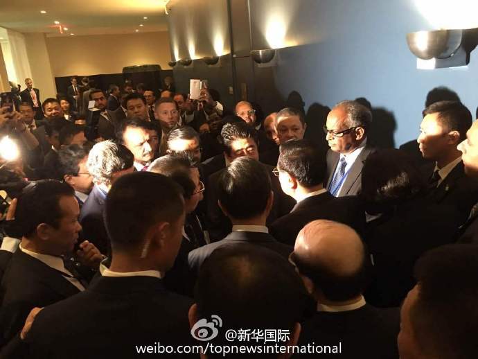新华网北京9月21日电 据新华社“新华国际”微博报道,当地时间21日上午,李克强在纽约联合国总部出席第71届联大一般性辩论并发言。总理发言结束后,日本首相安倍晋三在会场外过道处走上前与李克强握手交谈。