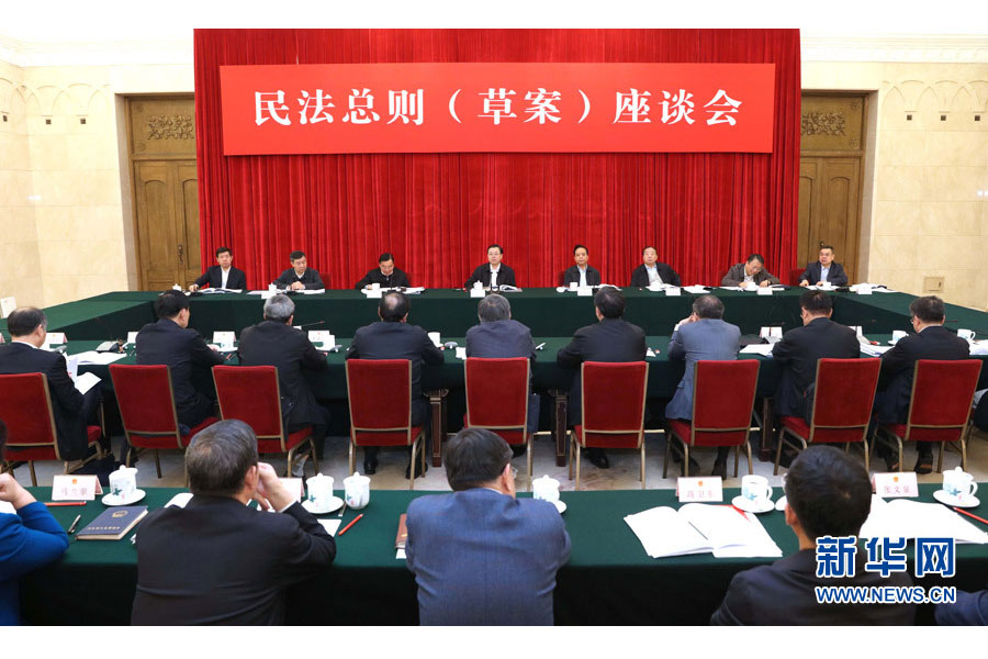 民法总则在民法典中具有统率性、纲领性作用。2016年6月,十二届全国人大常委会第二十一次会议初次审议了民法总则草案,标志着民法典编纂工作正式进入立法程序。座谈会上,中央有关部门、单位负责同志,部分省(自治区、直辖市)人大常委会负责同志,部分全国人大代表、全国政协委员围绕民法总则基本原则,民事主体、民事权利和民事责任等民事基本制度先后发言。张德江边听边记,不时与大家进行交流。