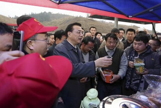 贵州黎洛高速中潮服务区农民工服务站,为返乡农民工免费提供茶水、泡面及法律咨询、用工信息等服务。李克强14日专程到此看望正在歇脚的农民工。总理说, 服务站不仅代表政府给进城务工人员返乡提供服务,更给他们人文关怀、人性照顾,让他们“暖身暖心”。